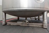General Info: Dome top equipped with a 12 paddle agitator powered by a 3 HP drive, 30" x 16" oval man way, (3) 6"ID vents, (2) ¾" threaded ports and (1) 3½" OD, 2¾" ID tri-clamp fitting. Side wall contains one ¾" threaded port and one pressure guage. Dish bottom has a ¾" threaded drain plug and 6½"OD, 5½" ID tri-clamp center bottom discharge with 18" ground clearance. Mounted on four stainless steel legs. OAD: 93"L x 93"W x 118"H